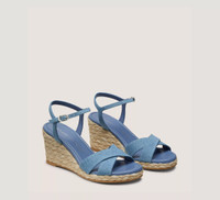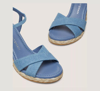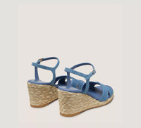 EDITOR'S NOTES The DAYNA ESPADRILLE WEDGE offers a new take on our customer-favorite DAYNA PLATFORM sandal. Featuring the same crossover strap design and sleek adjustable ankle strap, this vacation-ready update is set on a lightweight 65-mm wedge that's just as elevated as it is wearable. PRODUCT DETAILS MEASUREMENTS Heel Height: 3", 75 mm Platform Height: 0.4", 10 mm All measurements are made on a size 6 shoe. There may be slight measurement variations based on size. FEATURES Sandal Wedge Round toe Jute-wrapped wedge Adjustable ankle strap MATERIALS Vintage Denim & Jute Leather insole Leather outsole MADE IN Spain