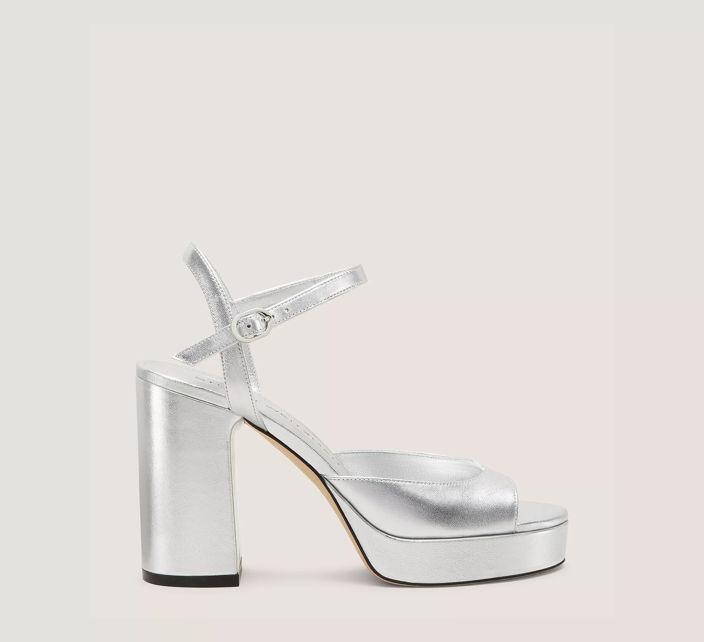EDITOR'S NOTES The DAYNA II PLATFORM reimagines our best-selling platform sandal silhouette with a reworked, arched vamp design. A 25-mm platform paired with a 110-mm block heel further elevate the look while also offering extra comfort and support. PRODUCT DETAILS MEASUREMENTS Heel Height: 3.7", 95 mm Platform Height: 1", 25 mm All measurements are made on a size 6 shoe. There may be slight measurement variations based on size. FEATURES Sandal Block heel Round toe Platform Adjustable ankle strap MATERIALS Liquid Metallic Leather Leather insole Leather outsole MADE IN Spain
