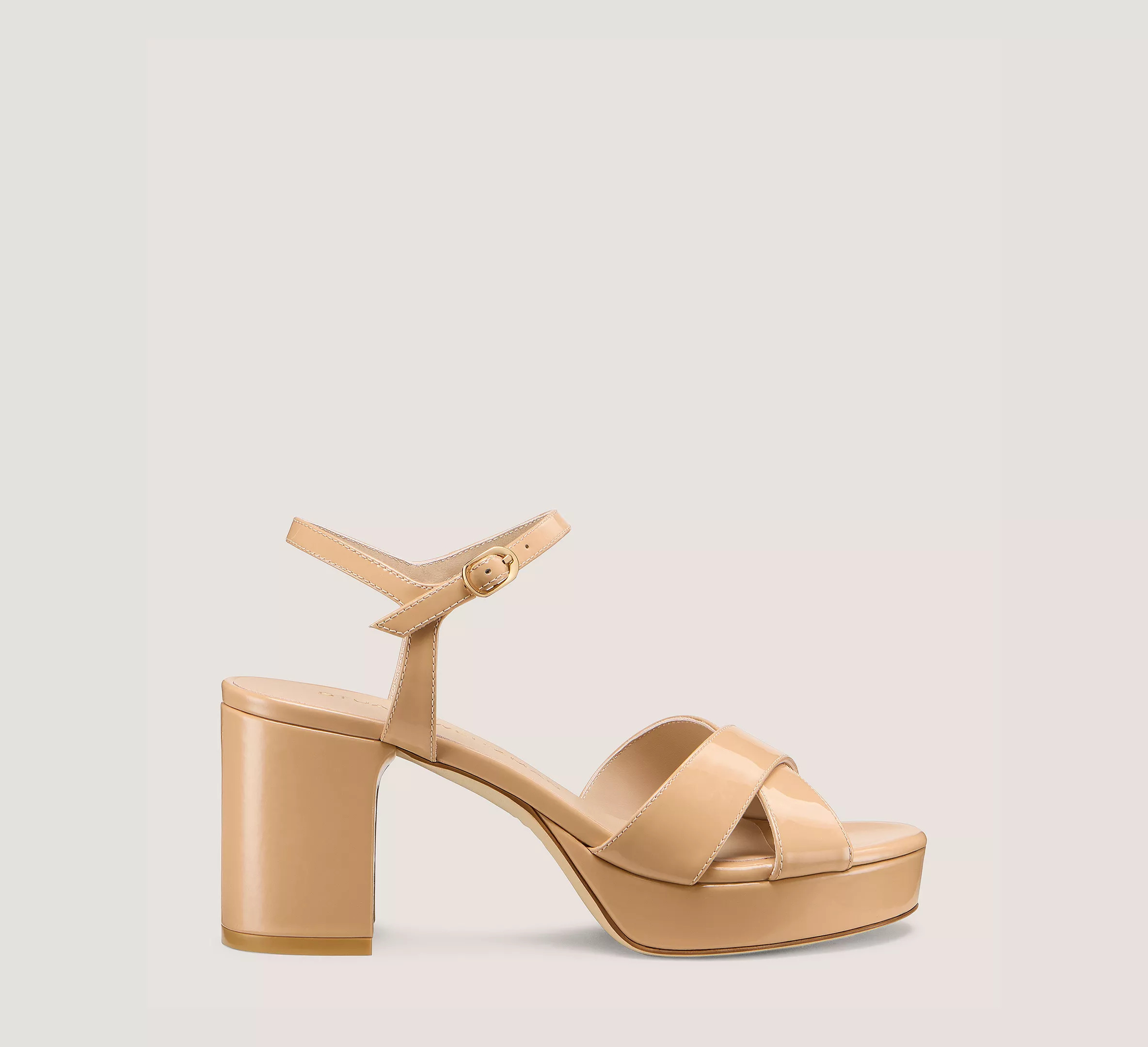 EDITOR'S NOTES The DAYNA PLATFORM 80 sandal, featuring an 80-mm block heel, offers a lower-heeled update on our best-selling 110-mm DAYNA PLATFORM. It is crafted with the same sleek crossover straps and a substantial platform — both of which offer extra style and support to the look. PRODUCT DETAILS MEASUREMENTS Heel Height: 3.2", 80 mm Platform Height: 0.8", 20 mm All measurements are made on a size 6 shoe. There may be slight measurement variations based on size. FEATURES Sandal Block heel Round toe Platform Adjustable ankle strap MATERIALS Patent leather Leather insole Rubber outsole MADE IN Spain