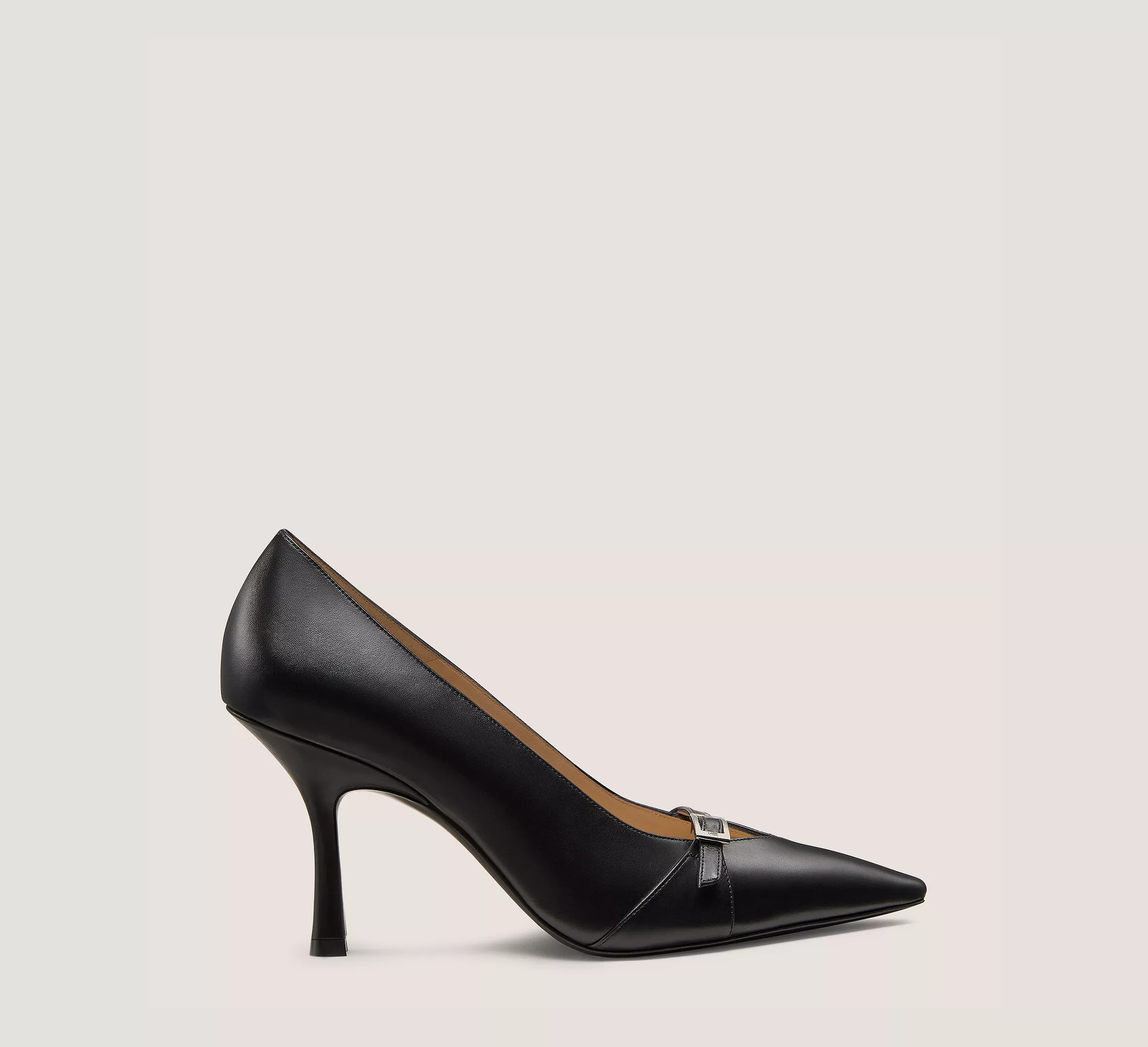 EDITOR'S NOTES The GEORGIE PUMP stands out with a cutout vamp detail and a vamp strap adorned with a polished angular buckle. It is crafted in Spain with a sculptural 85-mm stiletto heel and a sleek pointed toe. PRODUCT DETAILS MEASUREMENTS Heel Height: 3.4", 85 mm All measurements are made on a size 6 shoe. There may be slight measurement variations based on size. FEATURES Pump Sculptural Heel Pointed toe Vamp strap with angular buckle detail MATERIALS Smooth Leather Leather insole Leather outsole