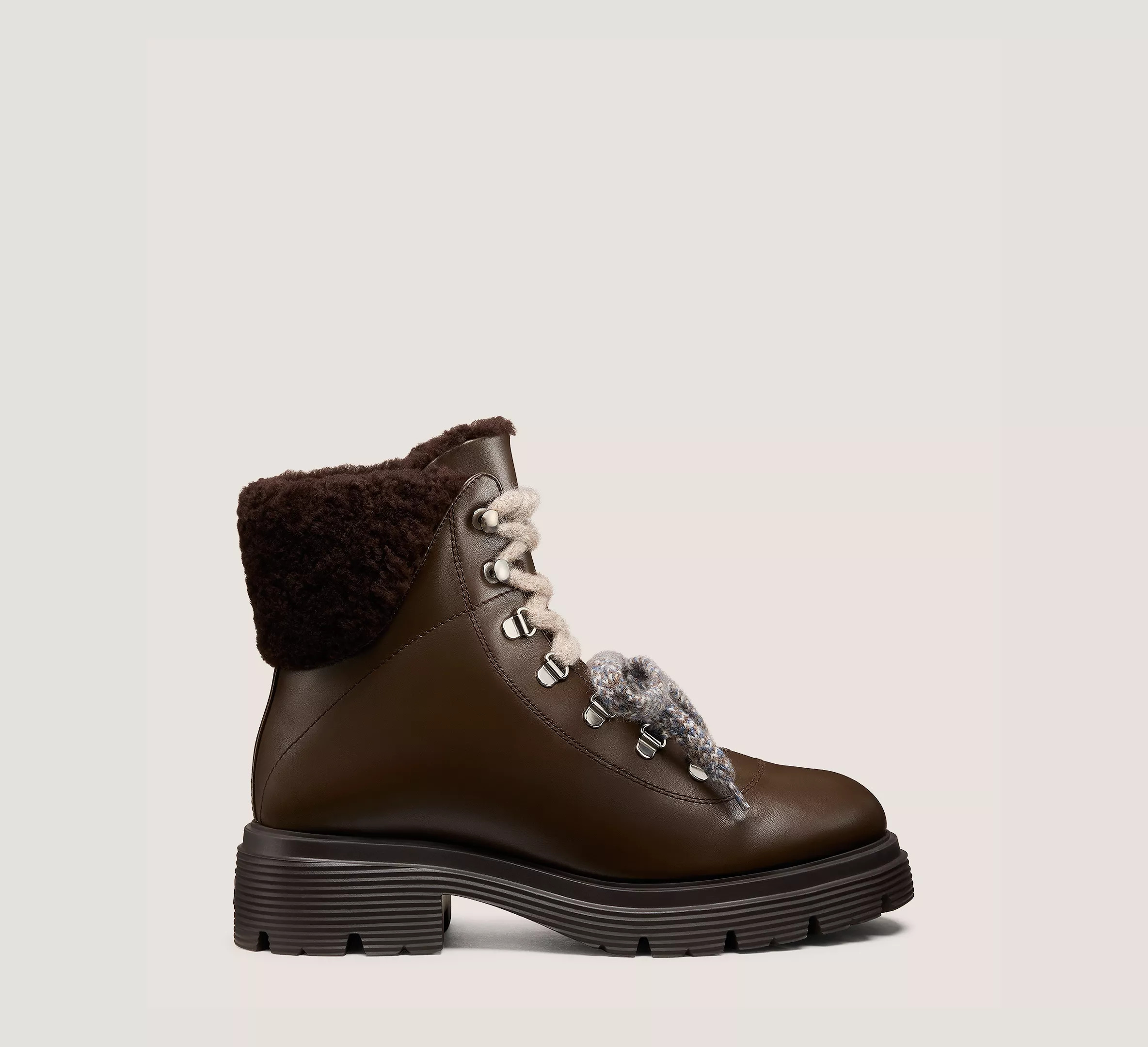 EDITOR'S NOTES The HUDSON LITE LACE-UP BOOTIE delivers a cozy-cool update on the classic hiking boot design. Lined with plush shearling and grounded by a lightweight and durable lug sole, it blends utility and comfort for an effortlessly elevated look. PRODUCT DETAILS MEASUREMENTS Heel Height: 0.8", 20 mm Shaft Height: 6.3", 16 cm Shaft Circumference: 11.4", 29 cm All measurements are made on a size 6 shoe. There may be slight measurement variations based on size. FEATURES Bootie Ankle Flat block heel Round toe Lace-up Shearling lining Lug sole Lightweight design MATERIALS Smooth Leather & Shearling Leather insole Rubber outsole MADE IN Spain