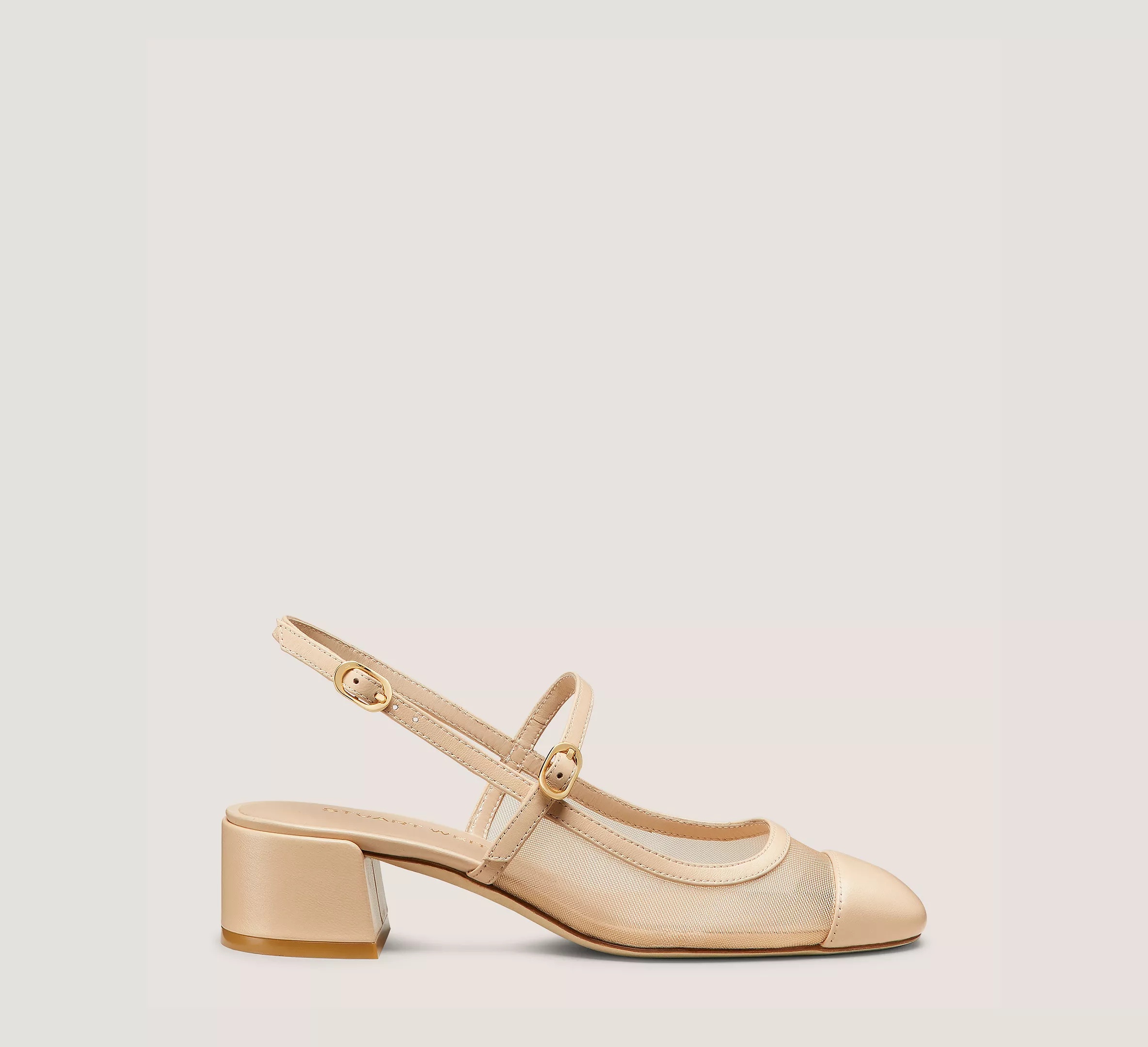 EDITOR'S NOTES The MAEVE MARY JANE SLINGBACK combines two trending looks —the Mary Jane and the slingback pump — to create a timeless wardrobe essential. Featuring a contrasting toe cap, a sleek vamp strap and a coordinating slingback strap, it is set on a wearable 35-mm block heel for just the right amount of lift. PRODUCT DETAILS MEASUREMENTS Heel Height: 1.4", 35 mm All measurements are made on a size 6 shoe. There may be slight measurement variations based on size. FEATURES Pump Block heel Round toe Mary Jane construction Toe cap detail Adjustable slingback strap MATERIALS Mesh Gala & Nappa leather Leather insole Leather outsole