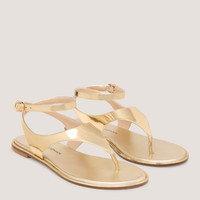 THE MARLEY SANDAL reimagines the classic thong silhouette with sculptural straps, including a sleek wraparound ankle strap that can be adjusted to your desired fit. It is set on a flat block heel for endless, easy wear. MEASUREMENTS Heel Height: 0.4", 10 mm All measurements are made on a size 6 shoe. There may be slight measurement variations based on size. FEATURES Sandal Round toe Flat block heel Toe posta Adjustable ankle strap MATERIALS Specchio leather Leather insole Leather outsole MADE IN Spain