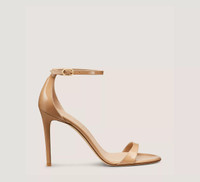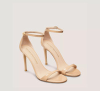 EDITOR'S NOTES Icon, Innovated: The NUDIST II SANDAL 100 features our lightest NUDIST construction to date. Updated details include a reimagined lightweight 100-mm stiletto heel, a new arched, higher-coverage toe strap and a modernized round toe. It is designed with a curved back counter cut to expose more of the foot — in a nod to our signature naked sandal look — and finished with our new cushioned insole which has been updated with a slim, almost-invisible padding for additional comfort. This style is part of our iconic NUDIST Collection, a range of silhouettes defined by a minimalist sensibility, minimal coverage, keyhole details and a double-strap design. PRODUCT DETAILS MEASUREMENTS Heel Height: 3.9", 100 mm All measurements are made on a size 6 shoe. There may be slight measurement variations based on size. FEATURES Sandal Stiletto heel Round toe Signature keyhole detail Cushioned insole Adjustable ankle strap Made in Spain A Stuart Weitzman icon Part of the iconic NUDIST Collection MATERIALS Patent leather Leather insole Leather outsole MADE IN Spain