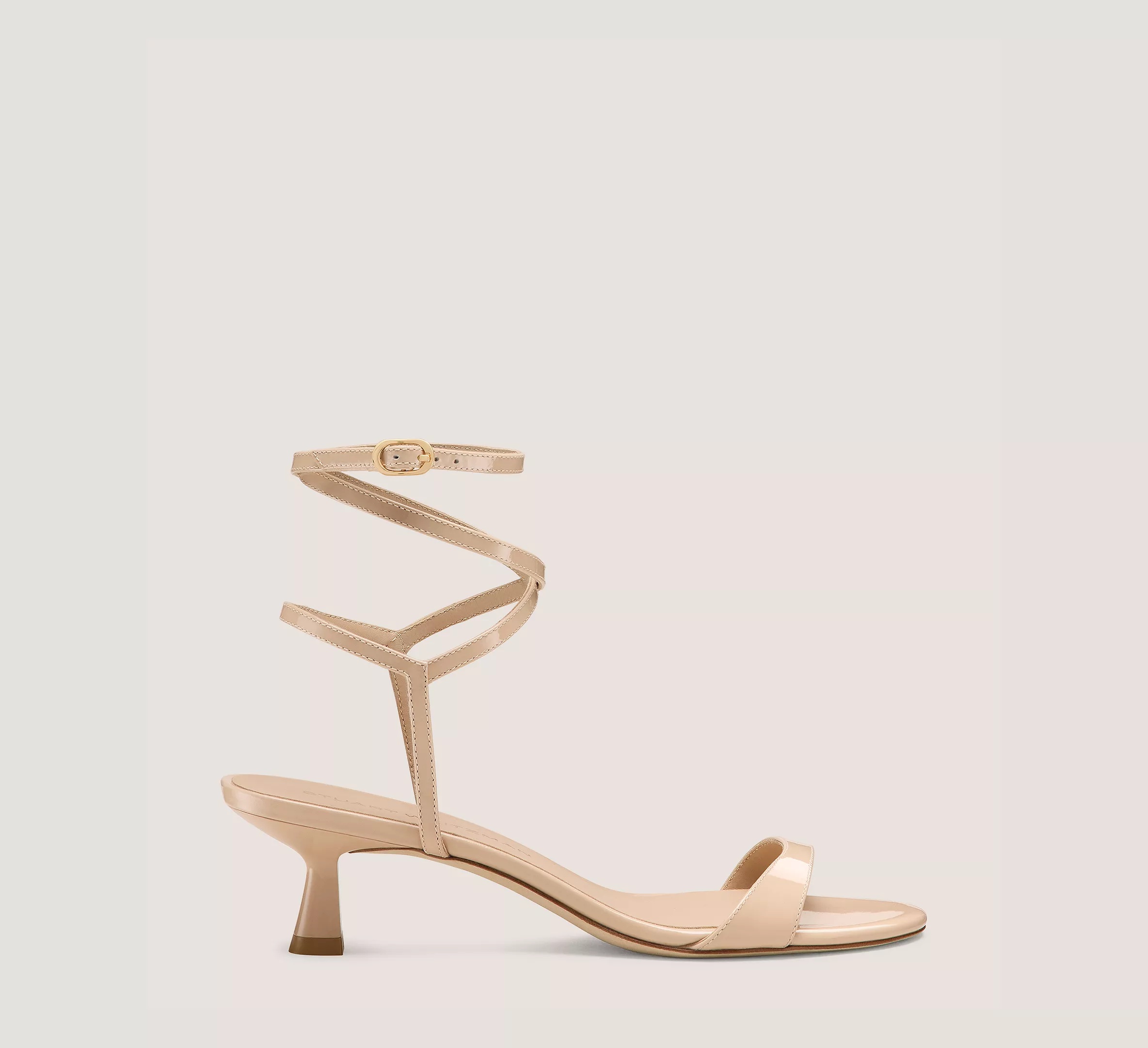 EDITOR'S NOTES The NUDIST WRAP 50 sandal reimagines our iconic red-carpet sandal design via an adjustable wraparound ankle strap and a 50-mm sculptural heel. Crafted by SW artisans in Spain, it features our newly innovated NUDIST construction complete with an arched, higher-coverage toe strap and a modernized round toe. PRODUCT DETAILS MEASUREMENTS Heel Height: 2", 50 mm All measurements are made on a size 6 shoe. There may be slight measurement variations based on size. FEATURES Sandal Sculptural heel Round toe Cushioned insole Wraparound ankle strap Adjustable ankle strap Crafted by SW artisans in Spain A Stuart Weitzman icon Part of the NUDIST Collection MATERIALS Patent leather Leather insole Leather outsole MADE IN Spain