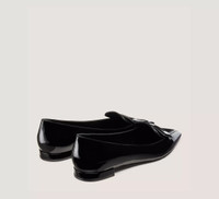 EDITOR'S NOTES The SOVINNIE FLAT draws upon our best-selling pointed-toe VINNIE pump, translating its sculptural sensibility into a polished flat. It features a penny loafer-inspired design— complete with a a higher-coverage vamp — and is finished with a modern, subtly puffy upper detail that recalls a penny slot. PRODUCT DETAILS MEASUREMENTS Heel Height: 0.2", 5 mm All measurements are made on a size 6 shoe. There may be slight measurement variations based on size. FEATURES Flat Pointed Toe Loafer-inspired design Puffed upper accent MATERIALS Patent leather MADE IN Spain