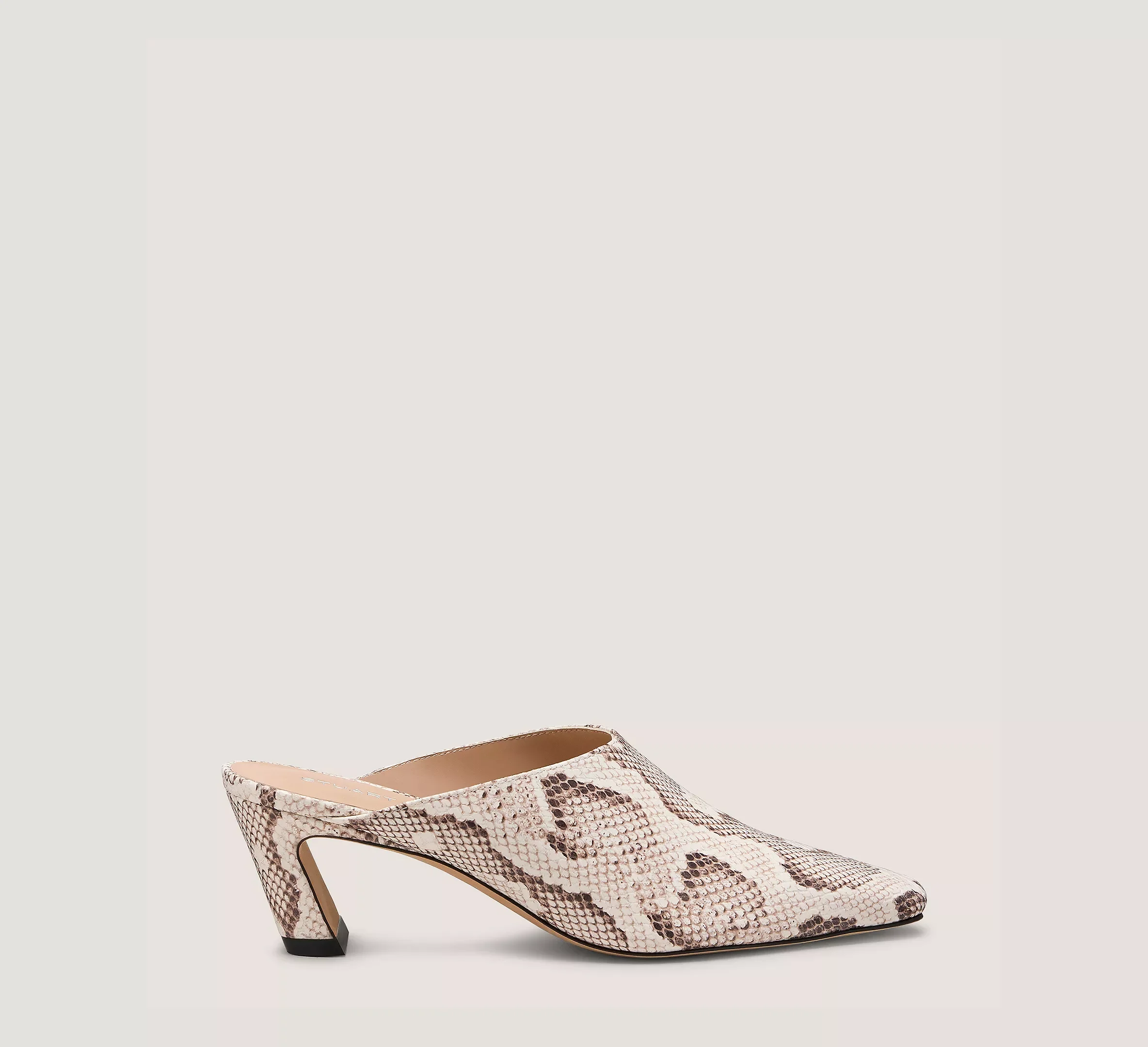 EDITOR'S NOTES The STASSI MULE is expertly crafted by our artisans in Spain with distinctively architectural design details that set it apart. It features an angled slim block heel which offers a 50-mm lift and is finished with a modern, squared-off pointed toe. PRODUCT DETAILS MEASUREMENTS Heel Height: 2", 50 mm All measurements are made on a size 6 shoe. There may be slight measurement variations based on size. FEATURES Pump Sculptural Heel Pointed toe Mule MATERIALS Snake Printed Leather Leather insole Leather outsole MADE IN Spain
