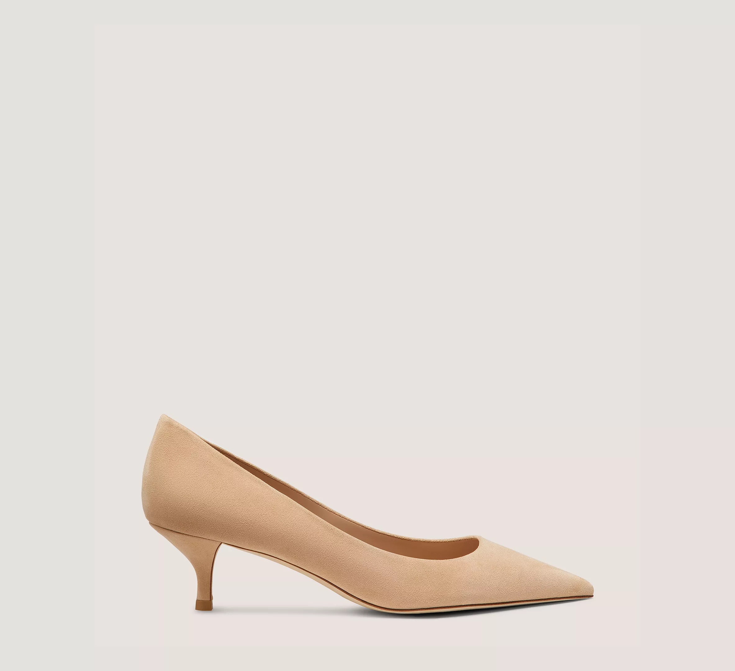 EDITOR'S NOTES Our most modern take on the classic kitten-heel pump yet, the STUART POWER 50 reimagines our iconic pointed-toe STUART pump design for even more style and comfort. Note its angled 50-mm heel that offers improved support and new shock-absorbing, padded insole which provides extra flexibility. PRODUCT DETAILS MEASUREMENTS Heel Height: 2", 50 mm All measurements are made on a size 6 shoe. There may be slight measurement variations based on size. FEATURES Pump Kitten heel Pointed toe Modernized construction for extra support New foam insole Crafted by SW artisans in Spain A Stuart Weitzman icon Part of the STUART Collection MATERIALS Suede Leather insole Rubber outsole MADE IN Spain