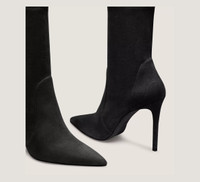EDITOR'S NOTES With the STUART POWER BOOTIE 100, our iconic pointed-toe STUART BOOTIE design is infused with more style and comfort than ever before. It is crafted by SW artisans in Spain with a reimagined construction for improved support and a 100-mm stiletto heel that's strategically placed on a slight angle for extra stability. Finished with a new shock-absorbing foam insole, it offers increased flexibility while still remaining as sleek as ever. PRODUCT DETAILS MEASUREMENTS Heel Height: 3.9", 100 mm Shaft Height: 6.7", 17 cm Shaft Circumference: 9.8", 25 cm All measurements are made on a size 6 shoe. There may be slight measurement variations based on size. FEATURES Bootie Ankle Stiletto heel Pointed toe Pull-on Sock bootie Industry-leading stretch construction Modernized construction for extra support New foam insole Crafted by SW artisans in Spain A Stuart Weitzman icon Part of the STUART Collection MATERIALS Stretch suede Leather insole Leather outsole MADE IN Spain