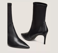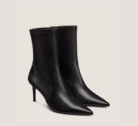 EDITOR'S NOTES The STUART POWER BOOTIE 75 delivers an even sleeker, even more comfortable update on our iconic pointed-toe STUART sock bootie design. Crafted by SW artisans in Spain, it features a reimagined construction for improved stability, a 75-mm stiletto heel placed on a subtle angle for increased support and a new shock-absorbing insole for even more wearability. PRODUCT DETAILS MEASUREMENTS Heel Height: 3", 75 mm Shaft Height: 7.1", 18 cm Shaft Circumference: 9.8", 25 cm All measurements are made on a size 6 shoe. There may be slight measurement variations based on size. FEATURES Bootie Ankle Stiletto heel Pointed toe Pull-on Sock bootie Industry-leading stretch construction Modernized construction for extra support New foam insole Crafted by SW artisans in Spain A Stuart Weitzman icon Part of the iconic STUART Collection MATERIALS Stretch Nappa Leather Leather insole Leather outsole MADE IN Spain