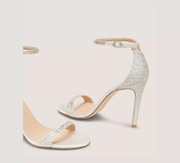 EDITOR'S NOTES The limited-edition STUART POWER SHINE pump, created in collaboration with Swarovski, delivers a high-shine, high-glam take on our new icon, the STUART POWER 75 pump. Meticulously crafted by our expert artisans in Spain, each pair is adorned with over 6,000 tonal Swarovski pave crystals. This silhouette features a modernized construction for maximum style and comfort, including a reworked 75-mm stiletto heel set on a subtle angle for extra support. Make every step striking in this dazzling pump. PRODUCT DETAILS MEASUREMENTS Heel Height: 3", 75 mm All measurements are made on a size 6 shoe. There may be slight measurement variations based on size. FEATURES Stiletto heel Pointed toe 75 mm Limited edition Over 6,000 Swarovski pave crystals per pair Ice blue version features Swarovski ReCreated™ Crystals — Swarovski's most sustainable crystals to date Part of the Swarovski x Stuart Weitzman Capsule Collection More colors and sizes available at swarovski.com MATERIALS Pave Crystal & Suede