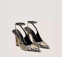 EDITOR'S NOTES The VINNIE 100 STRAP PUMP's modern, architectural sensibility is apparent from its pointed toe to its squared-off back counter. Melding style and comfort, it features a sculptural 100-mm heel that is placed at a slight angle to offer extra support and an adjustable a wraparound ankle strap. PRODUCT DETAILS MEASUREMENTS Heel Height: 3.9", 100 mm All measurements are made on a size 6 shoe. There may be slight measurement variations based on size. FEATURES Pump Sculptural heel Pointed toe Wraparound adjustable ankle strap MATERIALS Snake Printed Leather Leather insole Leather outsole MADE IN Spain