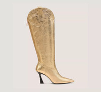 EDITOR'S NOTES The VINNIE COWBOY 85 infuses Western-inspired flair into the quintessential knee-high boot silhouette. Featuring an angled 85-mm heel and curved cuffs that dip in the front and back to allow for easier mobility, this style is a feat of artisanal Spanish craftsmanship and effortless comfort. PRODUCT DETAILS MEASUREMENTS Heel Height: 3.4", 85 mm Shaft Height: 13.2", 34 cm Shaft Circumference: 15.8", 40 cm All measurements are made on a size 6 shoe. There may be slight measurement variations based on size. FEATURES Boot Knee-high Angled stiletto heel Pointed toe Pull-on Side pull tabs MATERIALS Crushed Metallic Leather Leather insole Leather outsole MADE IN Spain