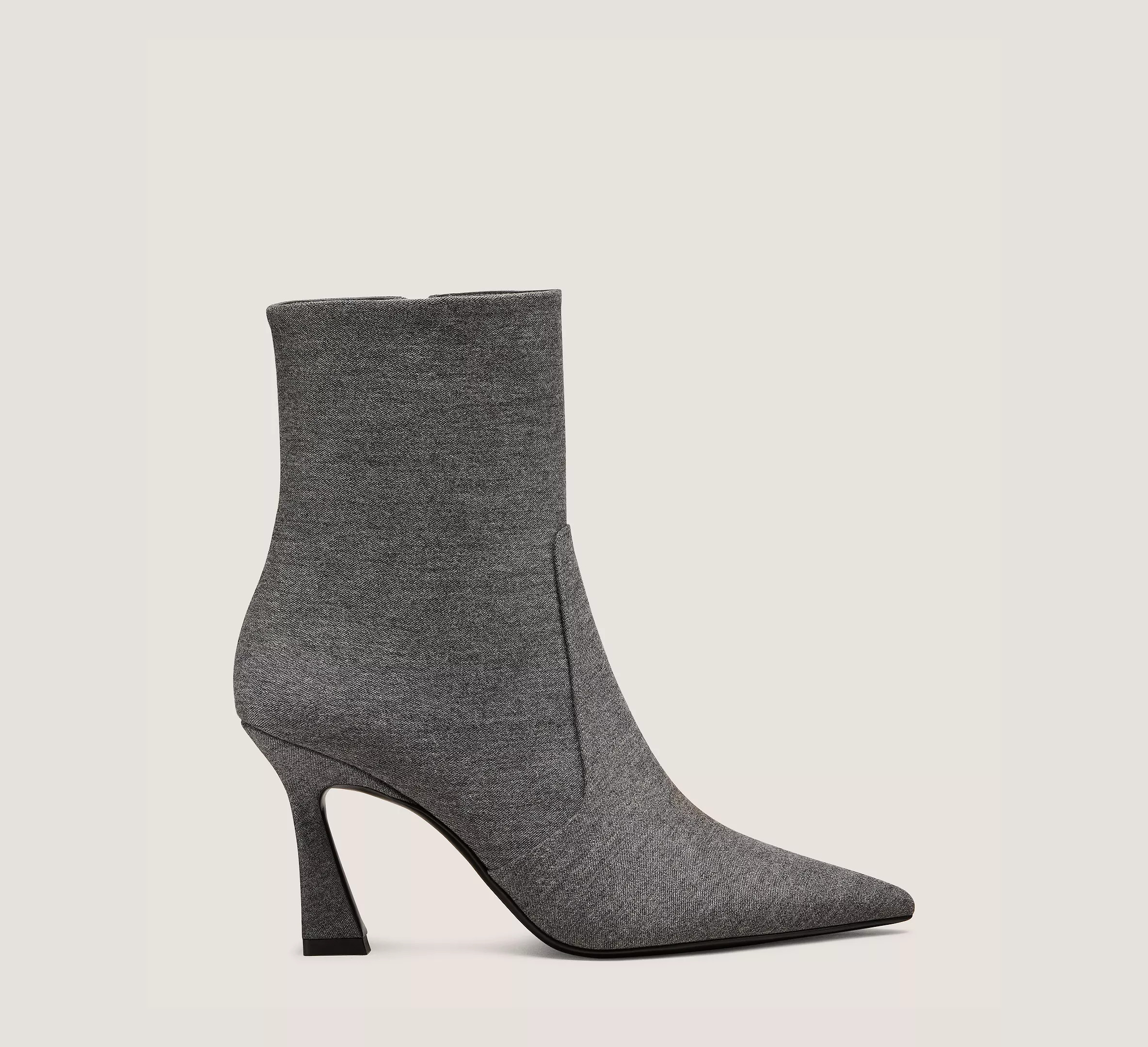 EDITOR'S NOTES The VINNIE ZIP BOOTIE 85, defined by its sleek, sharp sensibility, is crafted with a sculptural 85-mm heel that's strategically placed to offer extra support. It is finished with a squared-off back counter, a pointed toe and a side zipper. PRODUCT DETAILS MEASUREMENTS Heel Height: 3.4", 85 mm Shaft Height: 5.9", 15 cm Shaft Circumference: 10.2", 26 cm All measurements are made on a size 6 shoe. There may be slight measurement variations based on size. FEATURES Bootie Ankle Sculptural heel Pointed toe Zip-up MATERIALS Flannel Leather insole Leather outsole