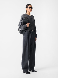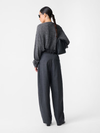 Cut from our heritage wool fabric that’s skilfully woven to ensure breathability and a dry, crisp hand feel, the classic Acuna pants are a Studio Nicholson staple for good reason. They combine a high rise with a wide, flowing leg, which is slightly elongated to allow the fabric to fold and pool. DETAILS - Double pleated front - Side pockets - Back flap pocket - Generous cut - Wear it with the matching Pinole ShirtLuana is 5'10" / 178 cms and wears a size UK8 CARE 100% Wool Dry Clean Only Made in Portugal