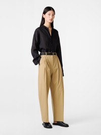 Cut this time from our signature powder cotton, the classic Acuna pants are a Studio Nicholson staple for good reason. They combine a high rise with a wide, flowing leg, which is slightly elongated to allow the fabric to fold and pool. - Double pleated front - Side pockets - Generous cut - Matte finish cotton DETAILS & CARE 100% COTTON Hand Wash / Delicate Dry Clean