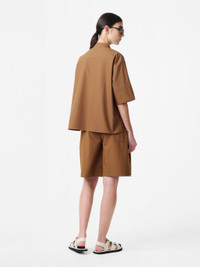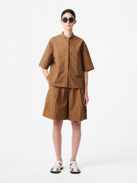 A short-sleeved shirt is an indispensable summer staple, and our Annick version is punctuated with modern takes on classic shirt-making. It’s cut from a noisy Japanese cotton and nylon blend – a fabric noted for its pleasingly crisp handle – and meticulously constructed with a grandad collar and a patch pocket for a utilitarian feel. DETAILS - Grandad collar - Patch pocket - Side slits - Boxy fit - Wear it with the matching Cito Short or Doring PantRebecca is 5’10” / 177.5 cms and wears a size UK8 CARE 100% Cotton Delicate Wash at 30°C | Cool Iron Made in Portugal
