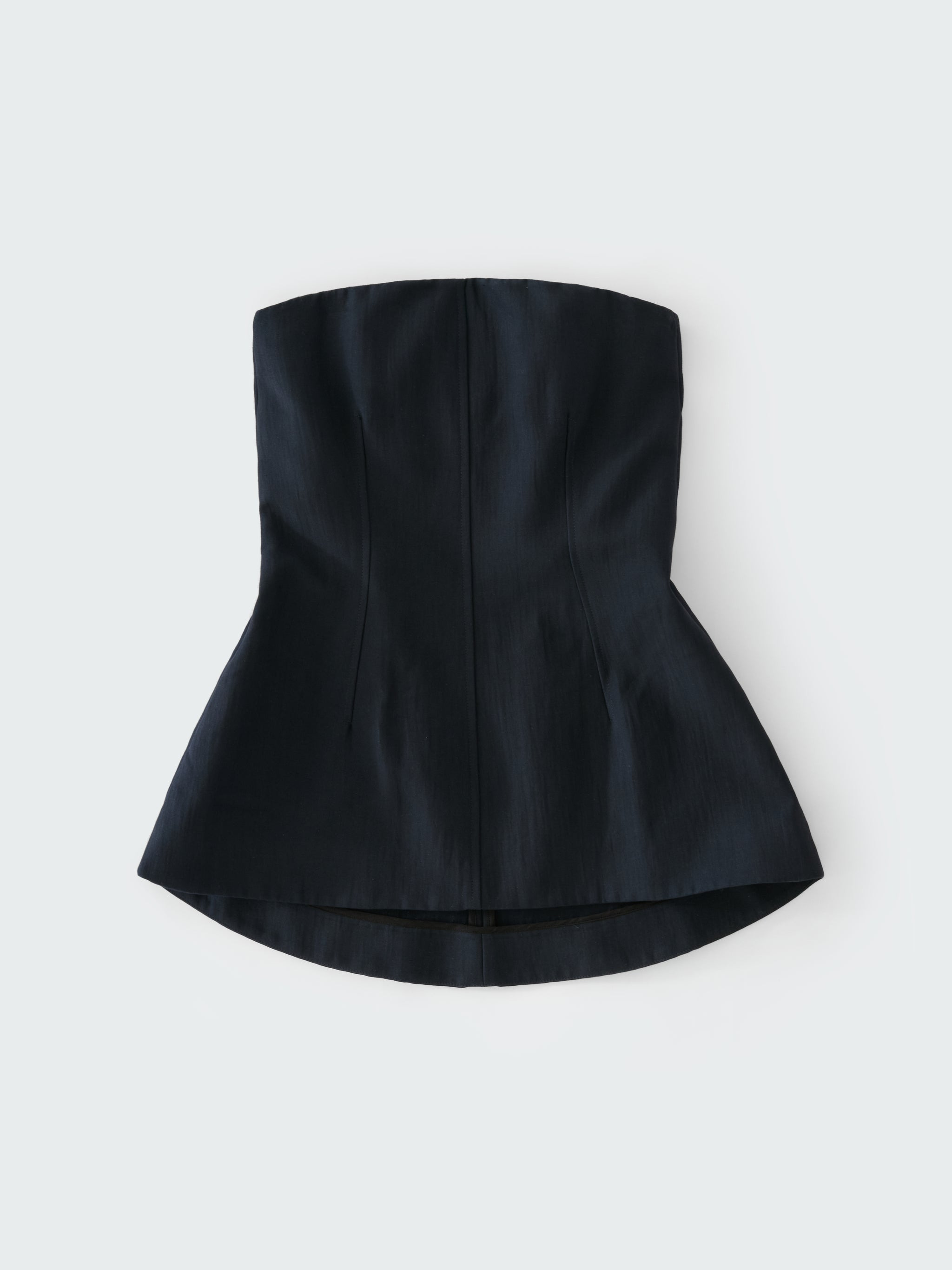 Studio Nicholson leans into traditional corsetry to create the Arles strapless top. Cut from our tumbled double cotton fabric to give a rounded hand feel, it has an internal corset with boning that accentuates the fabric choice and amplifies the sculptural silhouette. DETAILS - Internal corset with boning - Sculptural silhouette - Rear invisible back zip fastening - Wear it with the matching Fellini PantNataly is 5'10" / 177 cms and wears a size UK8 CARE 95% Cotton 5% Polyamide Do NOT Wash | Dry Clean Only Made in Portugal