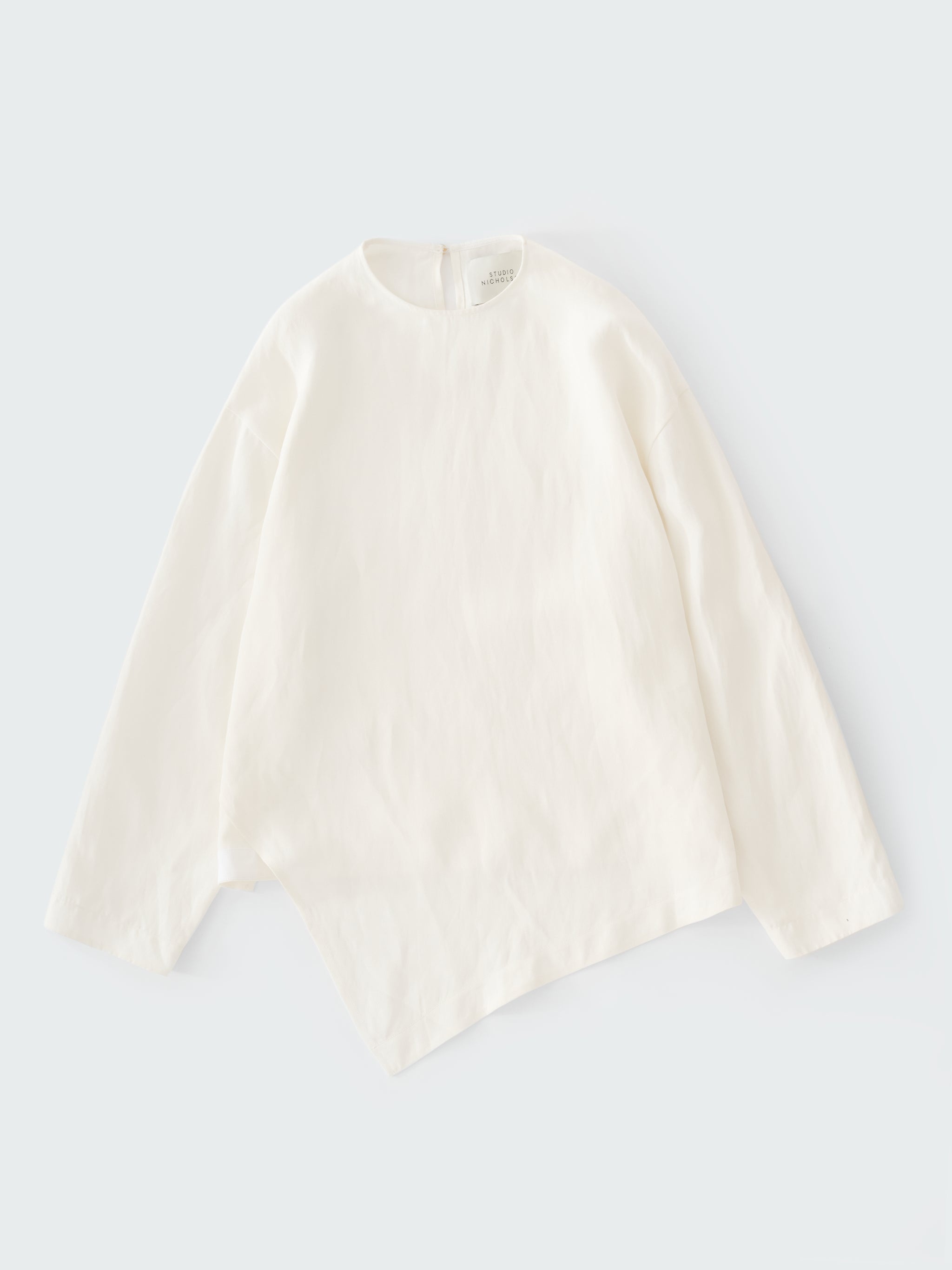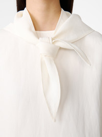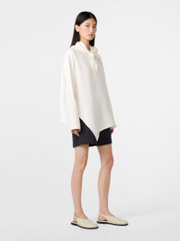 The Bute top is cut with an asymmetric front panel that falls softly over the body, embodying a relaxed feel that’s complemented by the detachable scarf. This iteration is cut from a fluid woven fabric that has a pleasing drape, then finished with neat straight cuffs. DETAILS - Detachable scarf - Buttoned keyhole at nape - Asymmetric front hem - Side slitXinyue is 5'11" / 180cms and wears a size UK8 CARE 73% Viscose 27% Linen Do NOT Wash | Dry Clean Only Made in Portugal