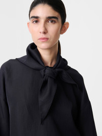 The Bute top is cut with an asymmetric front panel that falls softly over the body, embodying a relaxed feel that’s complemented by the detachable scarf. This iteration is cut from a fluid woven fabric that has a pleasing drape, then finished with neat straight cuffs. DETAILS - Detachable scarf - Buttoned keyhole at nape - Asymmetric front hem - Side slitRebecca is 5’10” / 177.5 cms and wears a size UK8 CARE 73% Viscose 27% Linen Do NOT Wash | Dry Clean Only Made in Portugal