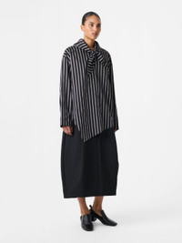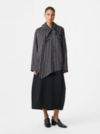 The Bute shirt is cut with an asymmetric front panel that falls softly over the body, embodying a relaxed feel that’s complemented by the detachable scarf. This striped style is cut from crisp poplin and is finished with neat straight cuffs. DETAILS - Detachable scarf - Buttoned keyhole at nape - Asymmetric front hem - Side slitMiko is 5'9" / 177cms and wears a size UK8 CARE 81% Lyocell 19% Polyamide Hand Wash | Delicate Dry Clean Made in Portugal