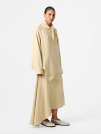 The Bute shirt is cut with an asymmetric front panel that falls softly over the body, embodying a relaxed feel that’s complemented by the detachable scarf. This iteration is cut from a fluid woven fabric that has a pleasing drape, then finished with neat straight cuffs. DETAILS - Detachable scarf - Buttoned keyhole at nape - Asymmetric front hem - Side slit - Wear it with the matching Hirta SkirtMiko is 5'9" / 177cms and wears a size UK8 CARE 100% Viscose Dry Clean Only Made in Portugal