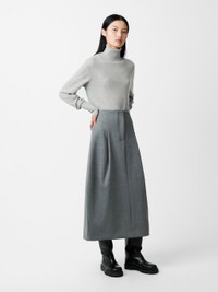 The Carson skirt is cut from a compact poly-viscose fabric that feels spongy yet dense to the touch and helps lend a sculptural bell-like shape to the silhouette. It has deep inverted pleats that are cleverly folded to create extra volume and which also draw the eye down to a thick folded midi hem that stops at the calf. DETAILS - Concealed hook and zip fastening - Reverse welt pocket - Single back vent - Stretchy poly-viscose blendChen is 5'10"/ 178 cms and wears a UK8 CARE 64% Polyester 34% Viscose 2% Elastane Dry Clean | Cool Iron Made in Portugal