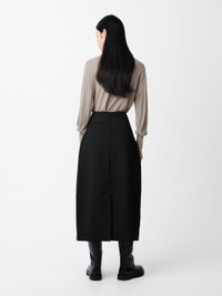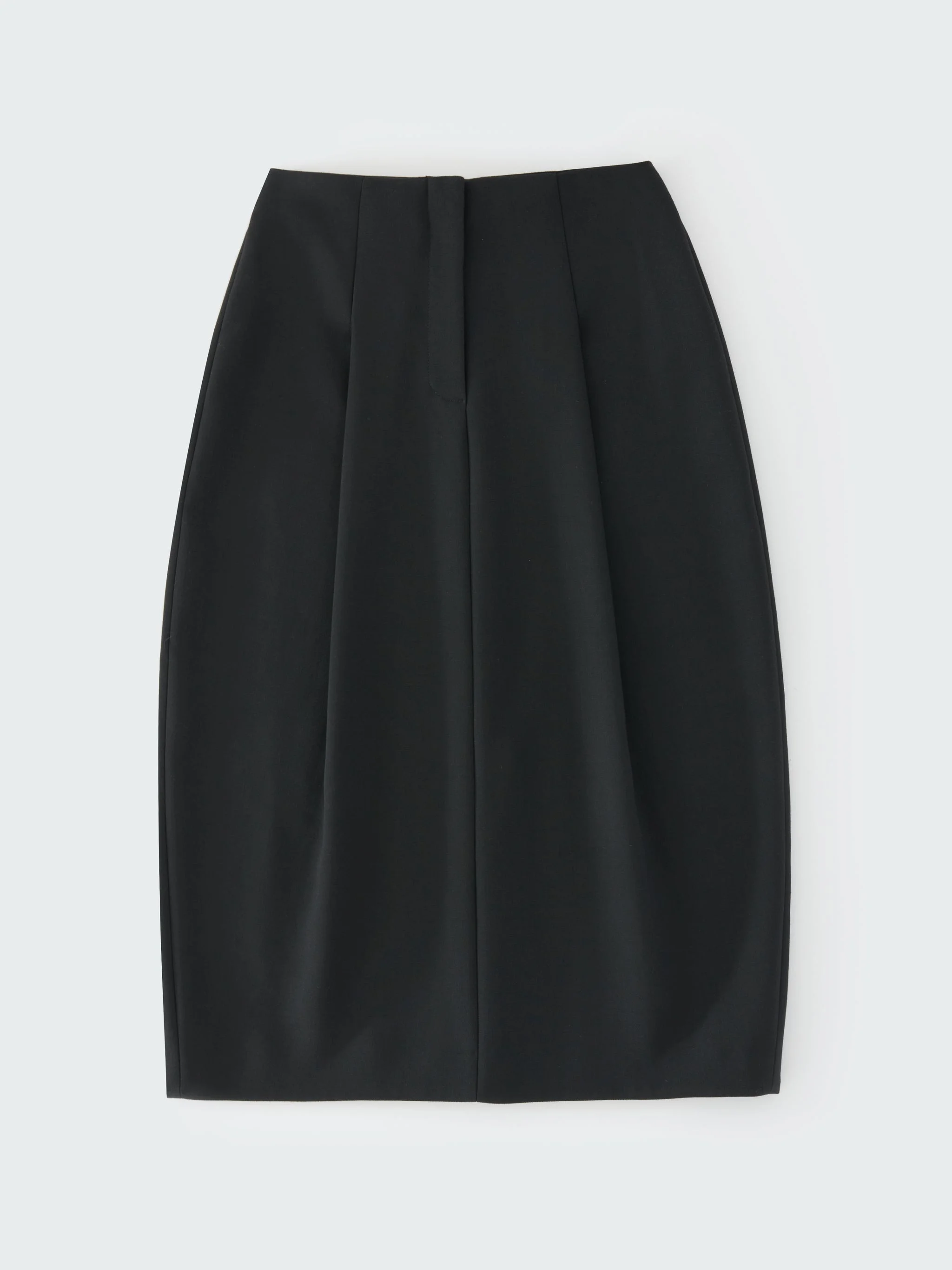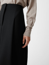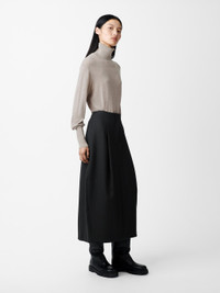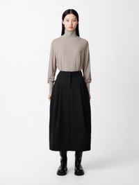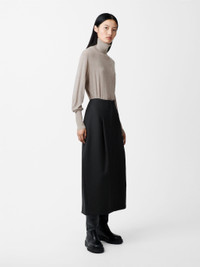 The Carson skirt is cut from a compact poly-viscose fabric that feels spongy yet dense to the touch and helps lend a sculptural bell-like shape to the silhouette. It has deep inverted pleats that are cleverly folded to create extra volume and which also draw the eye down to a thick folded midi hem that stops at the calf. DETAILS - Concealed hook and zip fastening - Reverse welt pocket - Single back vent - Stretchy poly-viscose blendChen is 5'10"/ 178 cms and wears a UK8 CARE 64% Polyester 34% Viscose 2% Elastane Dry Clean | Cool Iron Made in Portugal