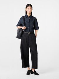 A true SN staple from season to season, our Chalco pants are cut wide and cropped, with a curved leg and dropped crotch. Here they are constructed from a fluid viscose linen twill, a fabric chosen for it’s clean, easy-wearing finish. DETAILS - Exaggerated curved leg - Button waist - Generous fit - Fluid viscose linenXinyue is 5'11" / 180cms and wears a size UK8 CARE 73% Viscose 27% Linen Do NOT Wash | Dry Clean Only Made in Portugal