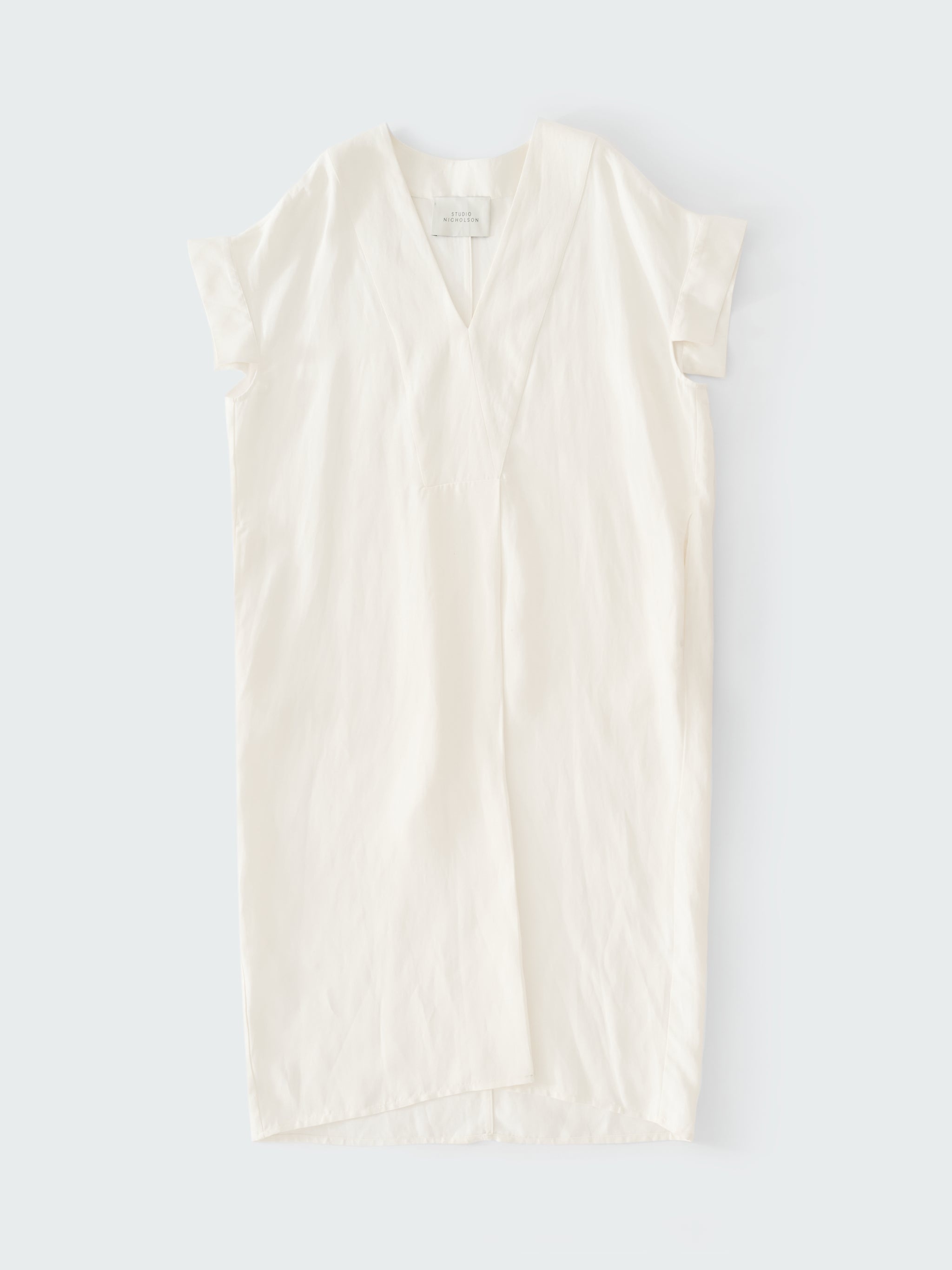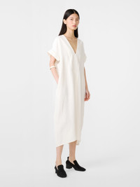 The sleeveless, mid-calf length Cley dress is cut from a woven fabric that gives a bouncy hand feel and lends itself to relaxed, effortless dressing. Crafted with a flattering low V-neckline and mock sleeve cuffs, Cley is constructed with a front knife pleat, subtly amplifying the fabric’s natural fluidity. DETAILS - Low V-neckline - Front knife pleat - Side seam pockets - Mock sleeve cuffsXinyue is 5'11" / 180cms and wears a size UK8 CARE 73% Viscose 27% Linen Do NOT Wash | Dry Clean Only Made in Portugal