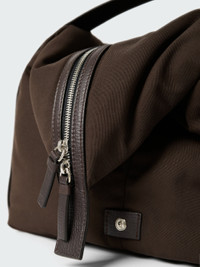 The relaxed elegance of Studio Nicholson’s ready-to-wear staples is recalled in this versatile Club Tote bag. It’s constructed from our Italian padded astro nylon – a soft-to-the-touch yet hard-wearing fabric noted for its durability. The bag is fitted with fixed handles and a leather trim that runs along the zip to the base, unbuttoning with poppers and allowing you to add extra volume to the bag’s generous interior. DETAILS - Padded astro nylon - Leather handles, trims and zip pulls - Two-way zip top - Internal zip pocket - Adjustable volume - W: 40cm x H: 36cm x D: 31cm