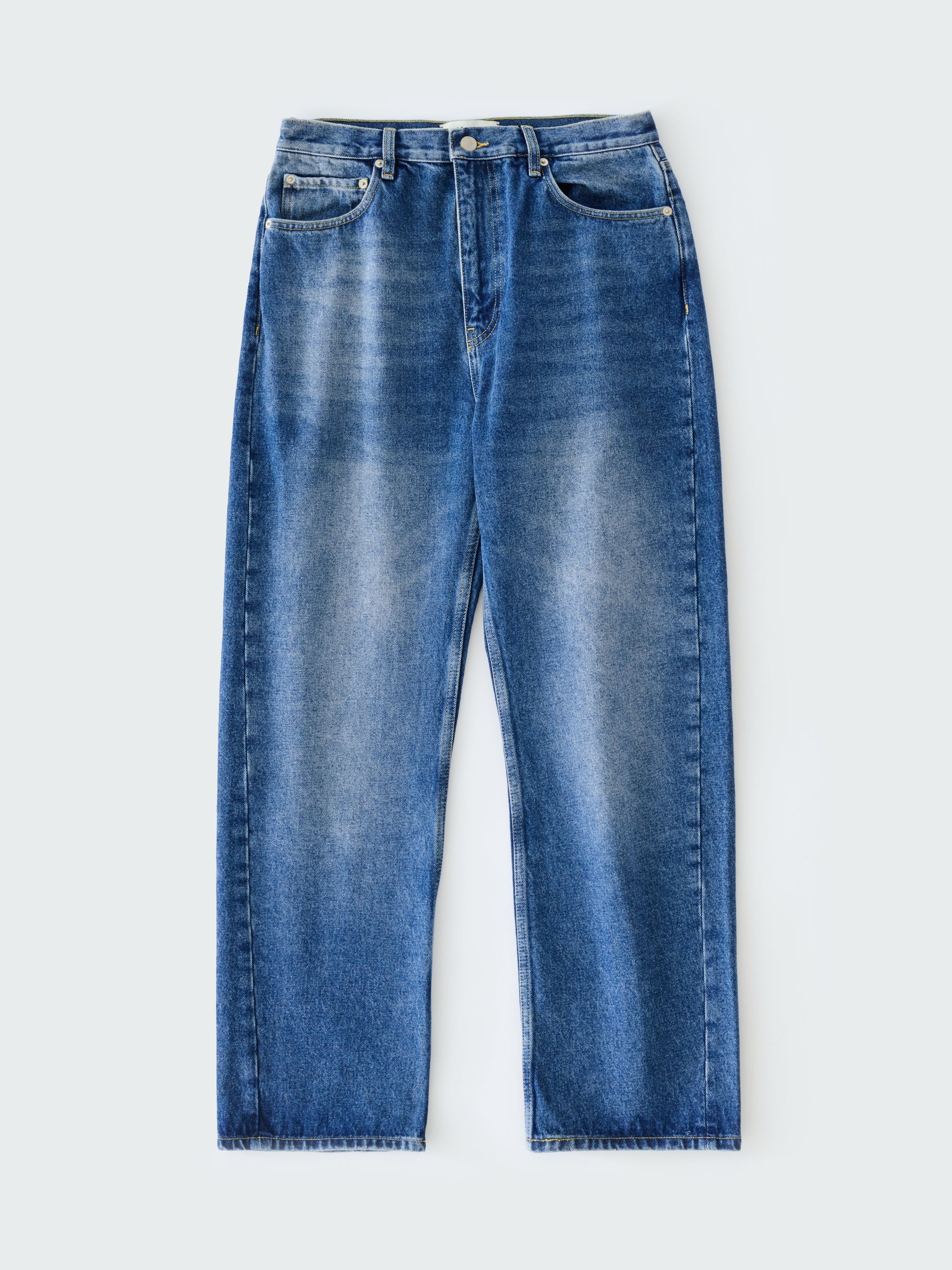 The Denjo jeans have a wide leg that’s softly shaped with a forward seam, creating an ergonomic fit that feels relaxed and wearable. This pair is cut from denim woven with regenerative cotton in a rich washed-indigo shade. DETAILS - Five-pocket construction - Metal rivets - Button and zip fly - Wide leg with front seam - Cut from denim made with regenerative cottonXinyue is 5'11" / 180cms and wears a size UK8 CARE 52% Regenerative Cotton 48% Cotton Wash at 30°C | Warm Iron
