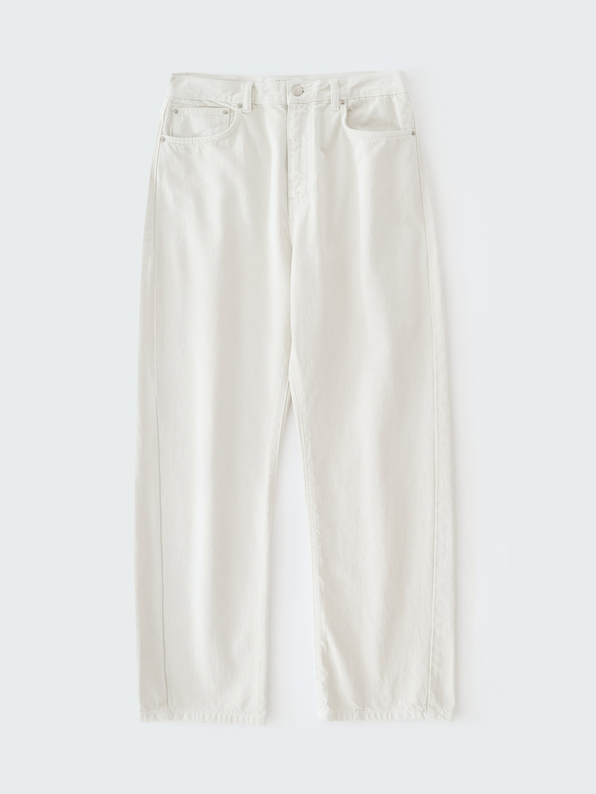 The Denjo jeans have a wide leg that’s softly shaped with a forward seam, creating an ergonomic fit that feels relaxed and wearable. This pair is cut from cotton denim that’s garment-dyed in neutral ice shade. DETAILS - Five-pocket construction - Metal rivets - Button and zip fly - Wide leg with front seam - Garment dyed denimMiko is 5'9" / 177cms and wears a size UK8 CARE 100% Cotton Wash at 30°C | Cool Iron