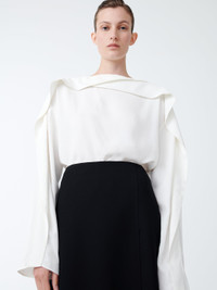 Thoughtful design details bring an artistic feel to the loose silhouette of this Emmet top, where a fluid drape ripples along the neck, shoulders and arms to create sculptural lines. It is cut from a breathable viscose crepe, which is so lightweight that it almost glides against the skin when worn. DETAILS - Organic drape detail fixed at the cuff - Wide, long sleeves - Keyhole opening with mother-of-pearl button closure - Cut from a soft, lightweight shirting fabricLouise is 5'11"/ 177.8 cms and wears a UK8 CARE 100% Viscose Delicate Dry Clean Only Made in Portugal