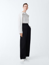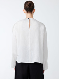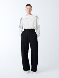 With exquisite detailing, the Emmet shirt has a unique silhouette thanks to its drape detailing, which overlaps at the neck and runs down the shoulders and arms. It is cut from a beautifully lightweight shirting fabric, which is soft and airy against the skin. Its shape is loose and easy, with a boxy cut and loose sleeves. DETAILS - Organic drape detail fixed at the cuff - Wide, long sleeves - Keyhole opening with mother-of-pearl button closure - Cut from a soft, lightweight shirting fabric Louise is 5'11"/ 177.8 cms and wears a UK8 CARE 81% Modal 17% Polyamide 2% Cupro Wash at 30°C | Delicate Wash | Do Not Steam Made in Portugal