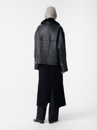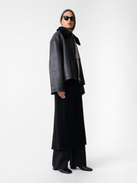 Erie is an indisputable winter wardrobe staple. It’s cut from buttery sheepskin leather that’s noted for its textured feel and a robust, naturally aged look. A feminine take on the men’s Del jacket from our Autumn/Winter ’25 collection, Erie is shaped to a boxy, cropped silhouette and has a detachable shearling collar and zipped cuffs. DETAILS - Detachable shearling collar - Two-way zip closure - Slip pockets - Zip cuffsLuana is 5'10" / 178 cms and wears a size UK8 CARE Main Fabric: 100% Leather Collar: 100% Sheepskin Lining: 100% Viscose Specialist Dry Clean Only