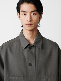 A washed denim jacket with a boxy finish, the Graph is garment dyed and modernised with oversized side entry patch pockets and a contrast button-through closure. DETAILS - 13oz garment dyed denim fabrication - Dropped shoulder - Unlined - Branded leather patch on rear hem Yugo is 6'1" / 186 cms and wears a Medium CARE 100% Cotton Wash at 30°C | Cool Iron
