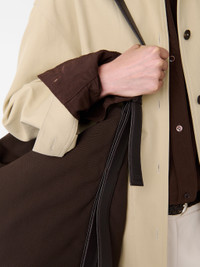 A relaxed, boxy fit makes Harron a versatile and easy-to-wear wardrobe pillar. It’s crafted from our softest vintage twill: an Italian-milled double construction of fine cotton yarns noted for its compact handle and smooth finish. The jacket has an inside pocket with outside topstitching and asymmetric seams that run from the shoulder to the hem, capturing Studio Nicholson’s penchant for clean lines. DETAILS - Boxy fit - Button closure - Side seam pockets - Straight hem - Wear it with the matching Nasser PantNataly is 5'10" / 177 cms and wears a size UK8 CARE 100% Cotton Do NOT Wash | Delicate Dry Clean Only Made in Portugal