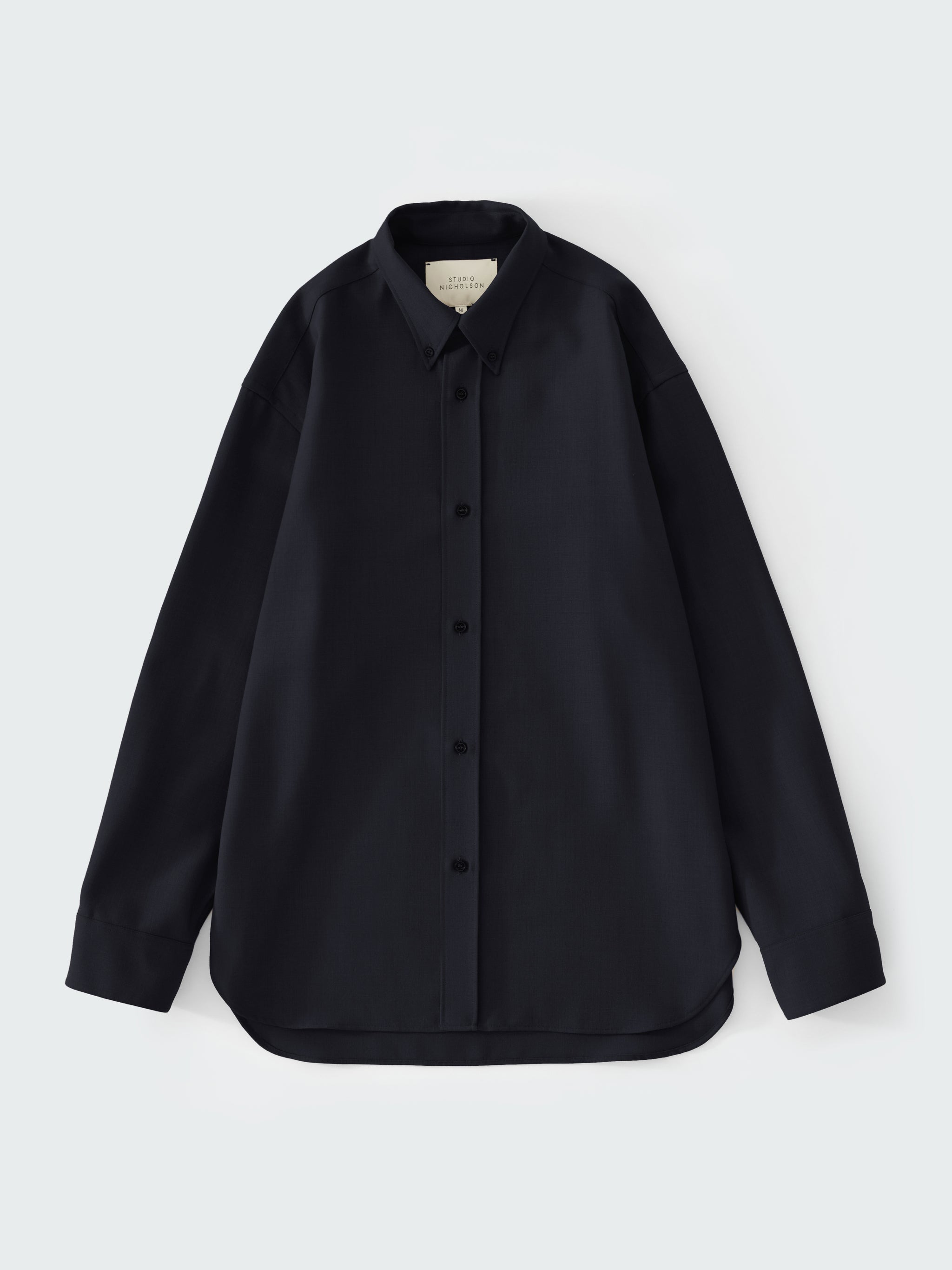 Building on the proportions of the evergreen button-down shirt, Jude has an oversized body, large armholes for greater range of motion, and elongated sleeves. It’s cut from heritage wool: a fabric composed of worsted wool yarns in a tropical weave construction noted for its crease-resistant finish and a dry, crisp hand feel. Jude is finished with a neat button-down collar. DETAILS - Dropped rear yoke - Exaggerated gusset - Oversized, flowing cutDarron is 6'1" / 185 cms and wears a size Medium CARE 100% Wool Do NOT Wash | Dry Clean Only Made in Portugal
