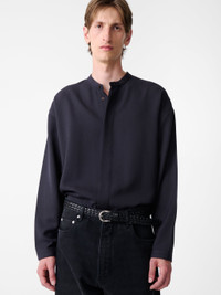 Our focus on fabric sees this Karst shirt cut from a lightweight technical wool that recalls classic tailoring cloths. Noted for its technical hand feel, Karst is shaped to an oversized profile with dropped shoulders and side gussets, capturing a laid-back feel that’s ideal for relaxed autumnal layering. DETAILS - Grandad collar - Dropped shoulder - Concealed placket - Buttoned cuffsTheodor is 6'2" / 188 cms and wears a Medium CARE 55% Polyester 45% Virgin Wool Do NOT Wash | Dry Clean Only Made in Portugal