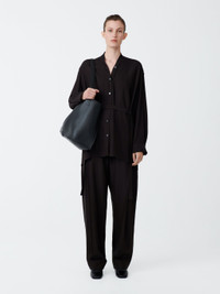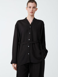 Cut from a luxurious but breathable viscose-linen twill, the Lane is an elegant shirting option, perfect for travel. The buttoned belt can be worn at the front or the rear, or removed for a more relaxed silhouette. DETAILS - Collarless, long line shirt - Dropped rear hem - Detachable belt adds shape to silhouette - Viscose and linen twill fabric Louise is 5'11"/ 177.8 cms and wears a UK8 CARE 84% Viscose 16% Linen Dry Clean Only Made in Portugal