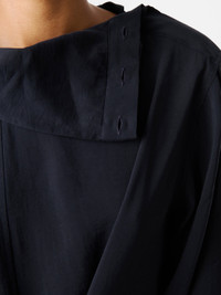 The Leat dress is cut from modal habotai that has a soft, fluid handle that lends it a luxuriously relaxed feel. It features dropped shoulders to emphasise the oversized fit, while the unstructured high neckline can also be worn unbuttoned to create a draped effect. DETAILS - Buttoned high neckline - Back box pleat - Buttoned cuffs - Straight hem Miko is 5'9" / 177cms and wears a size UK8 CARE 85% Modal Fsc 15% Polyester Hand Wash | Cool Iron Made in Portugal