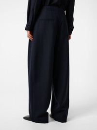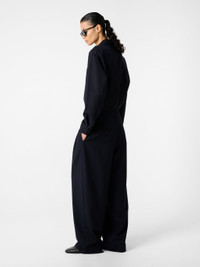 Studio Nicholson’s contemporary tailoring is evident in the Lira pant. Drawing on the slouchy tailoring prevalent in the 90s, Lira is shaped with a lower rise waist and a shorter length that highlights the curve in the leg. They’re cut from our heritage wool – a British-milled worsted wool selected for its breathability and a dry, crisp hand feel – and fitted with double reverse pleats. DETAILS - Hook and bar and zip fly closure - Double reverse pleats - Side seam pockets - Rear welt pockets - Wear it with the matching Pinole ShirtLuana is 5'10" / 178 cms and wears a size UK8 CARE Main Fabric: 100% Wool Lining: 100% Viscose Dry Clean Only Made in Portugal