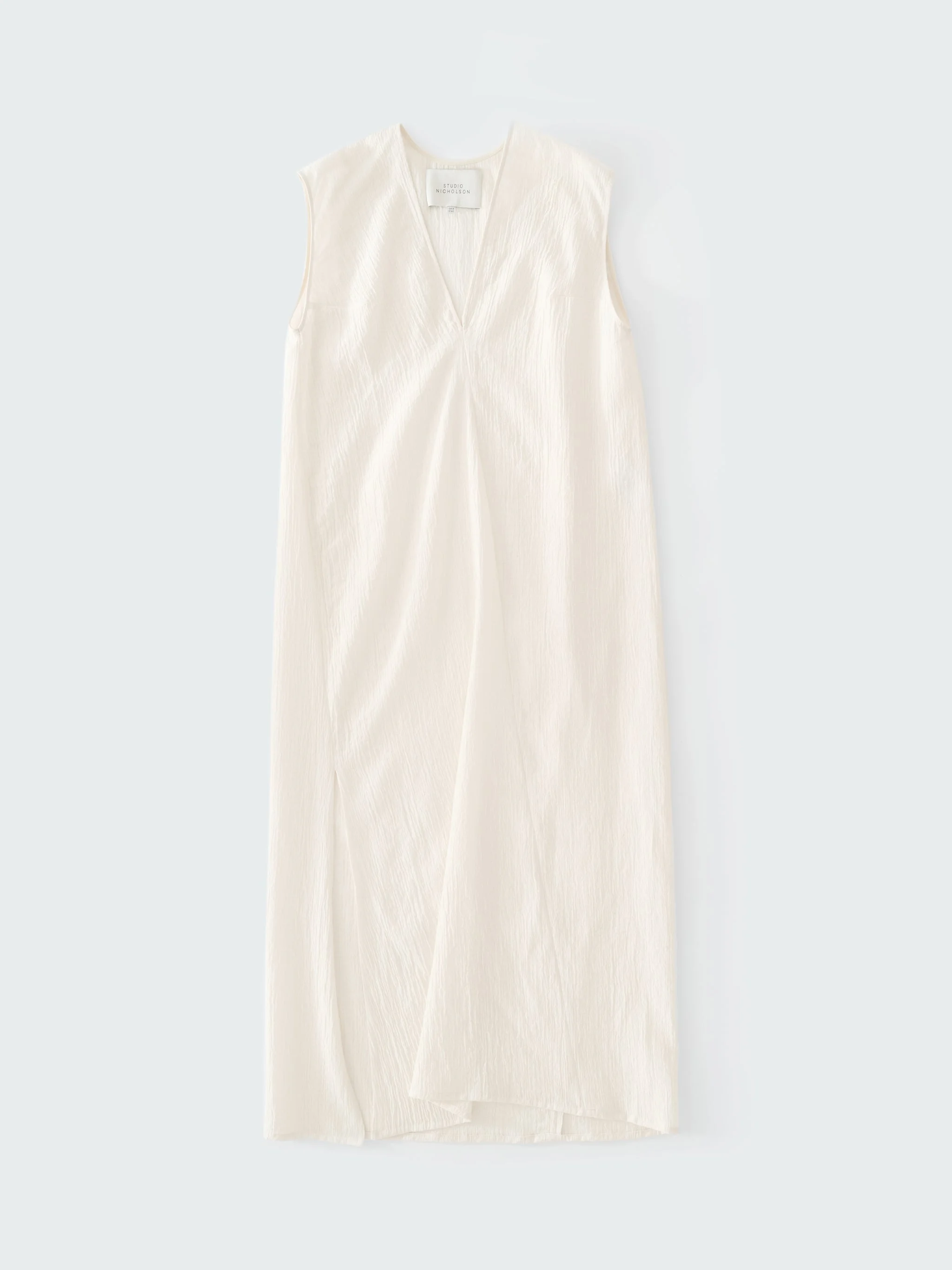 Pleasing asymmetric cuts are part of Studio Nicholson’s creative lexicon, and the Lise dress is constructed with twisted seams that means the fabric travels away from the side seam. The dress is cut from minimal matelasse that falls softly over the frame, then fitted with asymmetric in seams and a drape through the front – further accentuating the fabric choice while amplifying the fluid silhouette. DETAILS - V-neckline - Asymmetric in seams - Twisted seams - Side slit hemXinyue is 5'11" / 180cms and wears a size UK8 CARE 74% Cotton 26% Polyamide Do NOT Iron | Dry Clean Made in Portugal