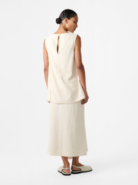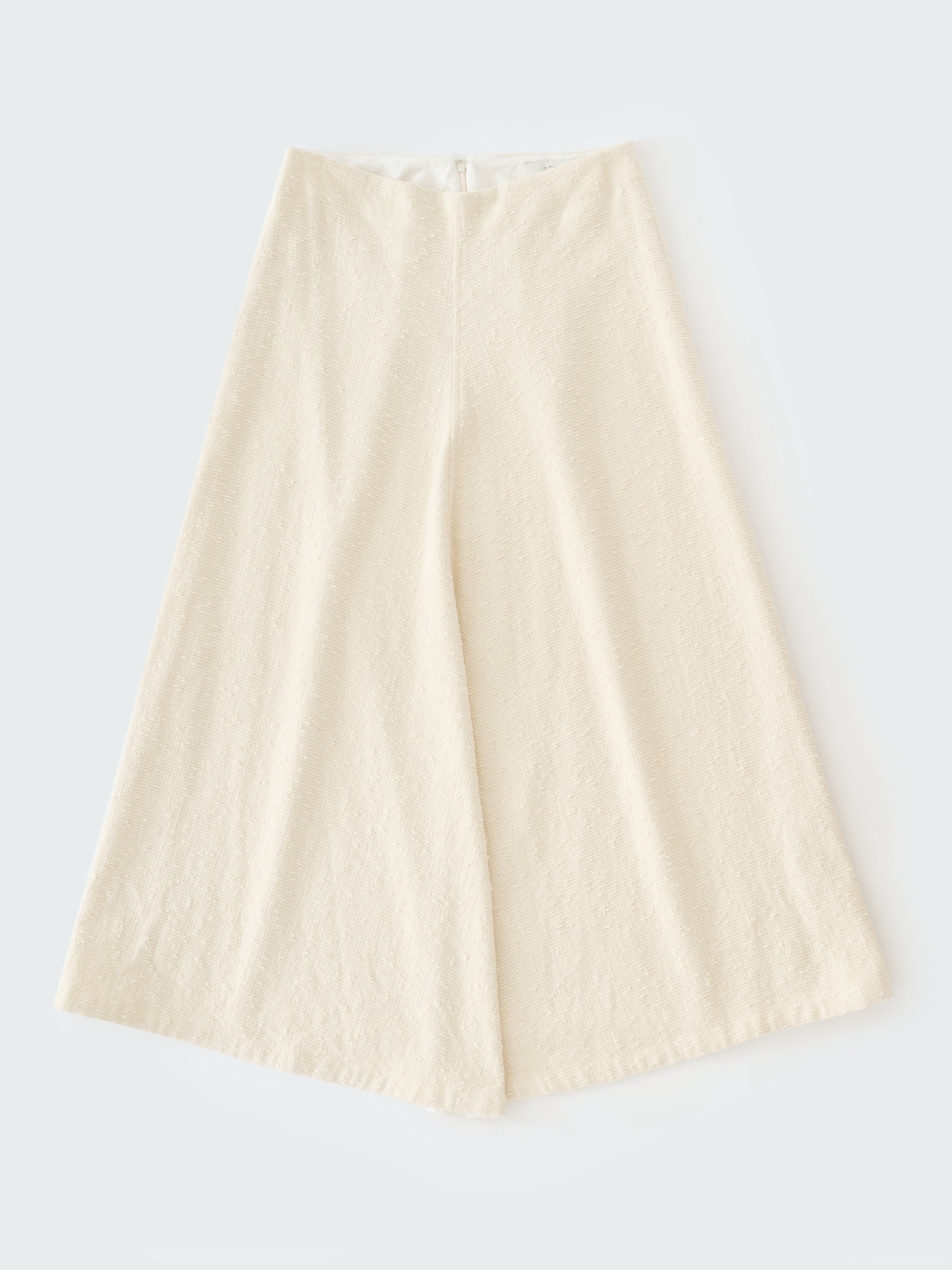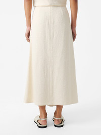 The Mae skirt is cleverly constructed with flared front panels that result in a slightly longer front profile, creating a fluid ‘kick’ hem for elegant movement. It’s cut to a mid-rise waist from tactile boucle cotton, exuding an artful feel that speaks to Studio Nicholson’s ‘fabric first’ philosophy. DETAILS - Panelled construction - Longer front hem - Concealed back zip - Wear it with the matching Mager TopMiko is 5'9" / 177cms and wears a size UK8 CARE 96% Cotton4% Polyamide Hand Wash | Cool Iron Made in Portugal