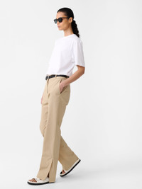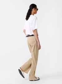 The Mitra pants are a clean and uncomplicated take on a wardrobe staple. They’re shaped to sit mid waist and have a straight leg and a relaxed split hem. Mitra is cut from our noisy cotton: an Italian-milled, lightly coated compact poplin that gives a technical hand feel and a crisp, papery texture that rustles in movement with the body. DETAILS - Hook fastening - Italian pockets - Hem split - Two rear pockets - Wear it with the matching Cove TopNataly is 5'10" / 177 cms and wears a size UK8 CARE 100% Cotton Delicate Wash at 30°C | Dry Clean Made in Portugal