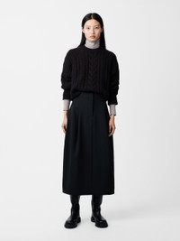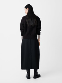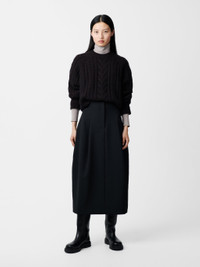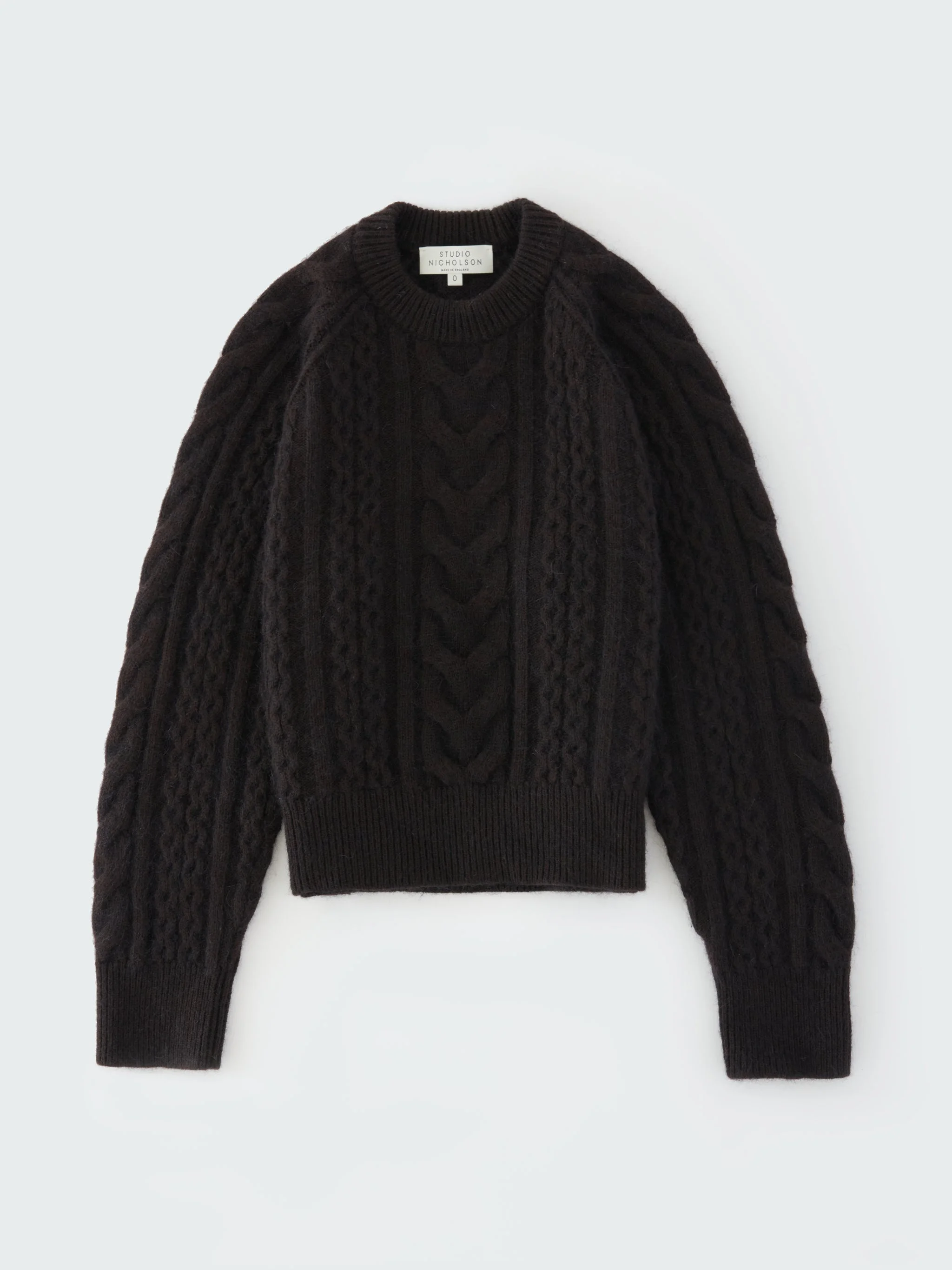 This Molve jumper is spun from unbrushed mohair aran yarns that result in a soft, fluffy handle and gentle lustre. It is accented with cable knits in varying sizes for textural interest and has chunky ribbed stitching at the neck and hem to hold its shape. Contrast it with wide-leg trousers and leather boots. DETAILS - Ribbed hem and cuffs - Cable-knit design - Soft mohair aran Chen is 5'10"/ 178 cms and wears a UK8 CARE 77% Wool 14% Mohair 9% Nylon Delicate Dry Clean Only Made in England