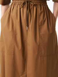 The Oates skirt is cut from our noisy cotton: a fabric that’s coated to give it a pleasingly crisp handle. Constructed with an elasticated waistband with drawstrings and a front vent, this easy-to-wear skirt is fitted with generous Italian patch pockets that lean into our longstanding workwear influences. DETAILS - Elasticated waist - Italian pockets - Front vent closure - Fixed side cordRebecca is 5’10” / 177.5 cms and wears a size UK8 CARE 100% Cotton Delicate Wash at 30°C | Cool Iron Made in Portugal