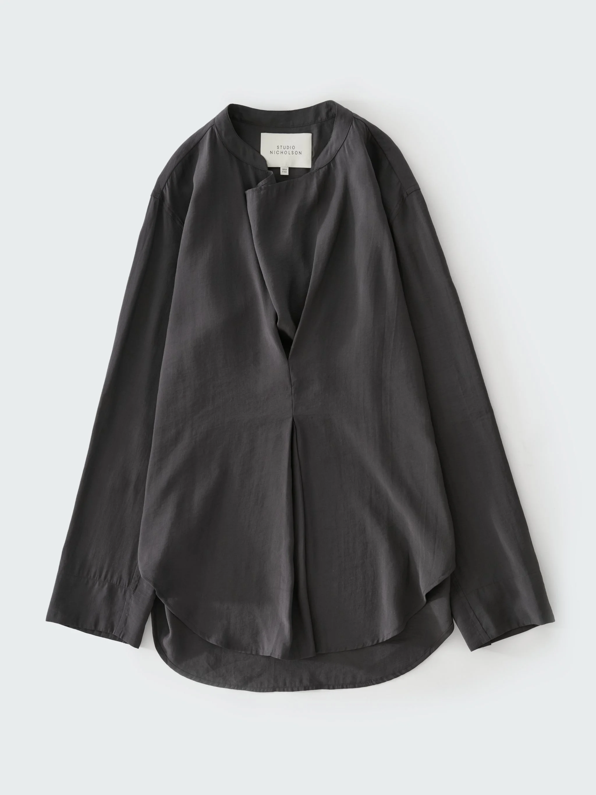 An example of Studio Nicholson’s modern take on classic shirtmaking, Pampa is crafted with an inverted pleat that creates a pleasing drape accentuated by the fabric choice: our powder handle modal is a lightweight material selected for its soft, powdery hand feel that amplifies the fluid silhouette. DETAILS - Inverted pleat - Buttoned side vents - Buttoned cuffs - Curved hem - Wear it with the matching Hera PantQing is 5'10''/ 177 cms and wears a size UK8 CARE 85% FSC Modal 15% Polyester Hand Wash | Dry Clean Made in Portugal