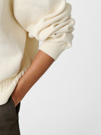 The Paola in Dry Rib Cotton applies a sculptural approach to an oversized jumper. Its crisp and structured shape is achieved by the knit of a 7-gauge high-twist cotton yarn with a dry hand feel. DETAILS - Crew neck - Dropped shoulder - Ribbed neck and cuffs - Traditional Guernsey detailing on the hem and shoulder - Short side slits Louise is 5'11"/ 177.8 cms and wears a UK8 CARE 100% Cotton Hand Wash
